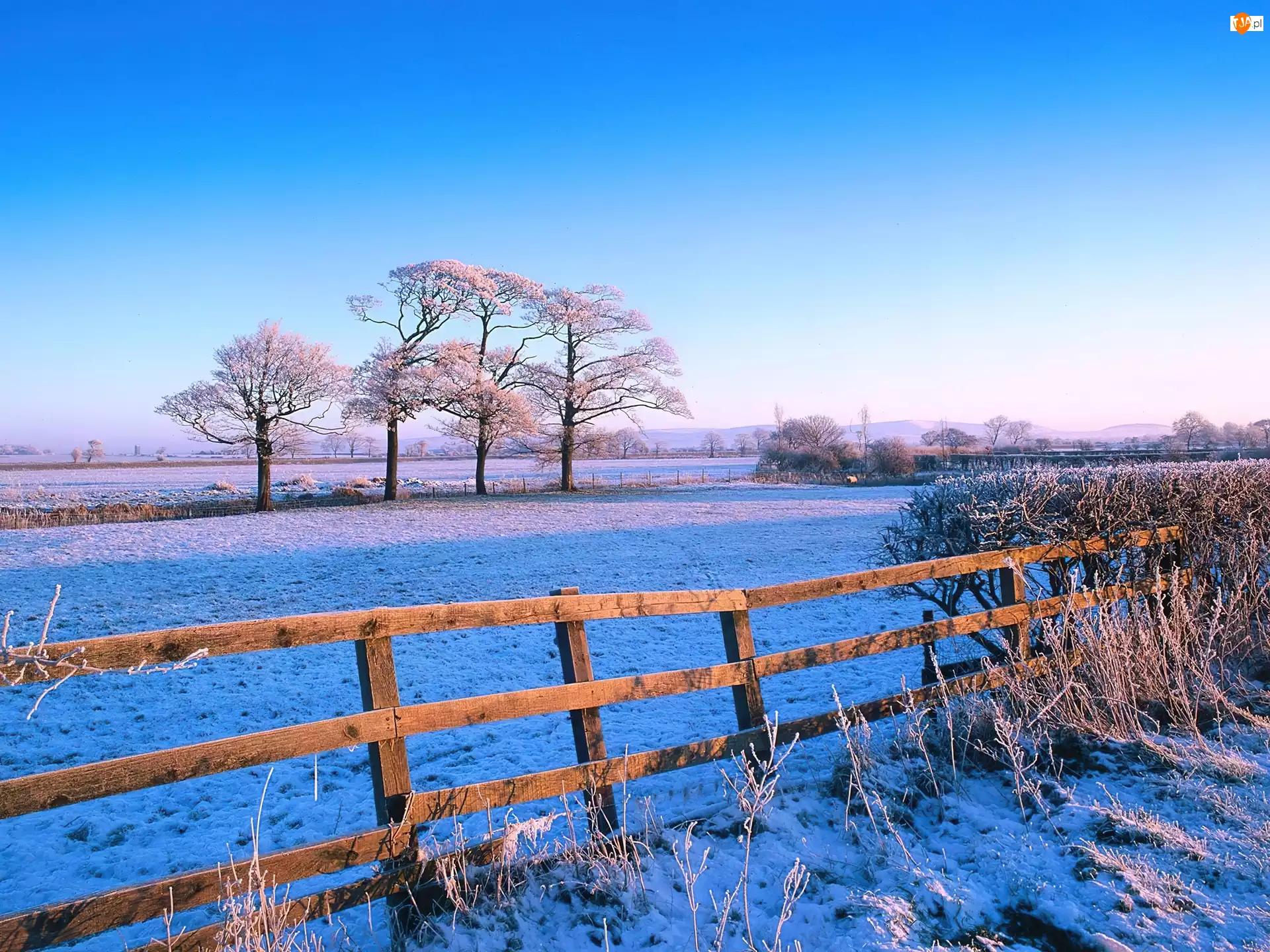 Zagroda, Zima, Pola, Drzewa