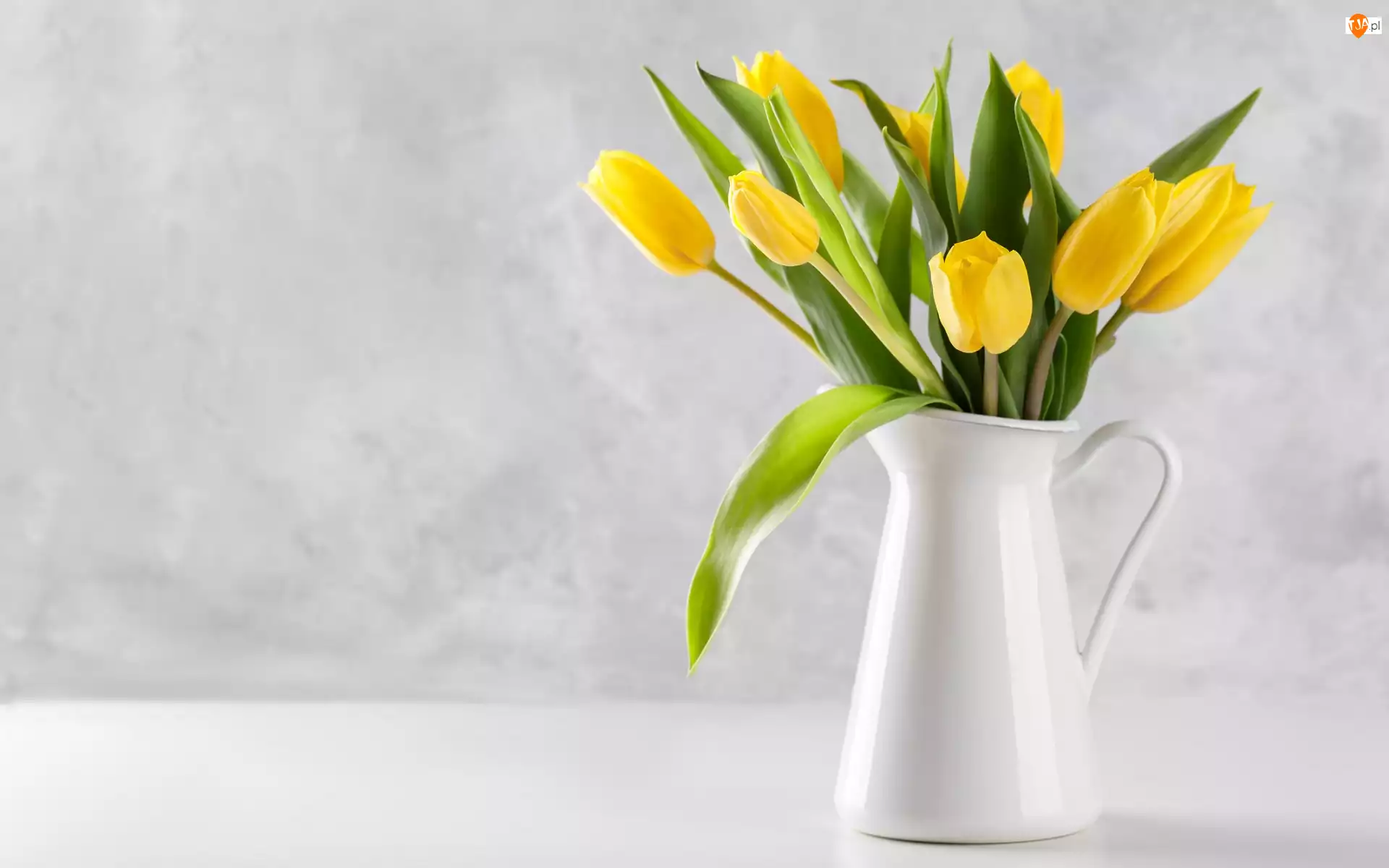 Żółte, Dzbanek, Bukiet, Kwiaty, Tulipany