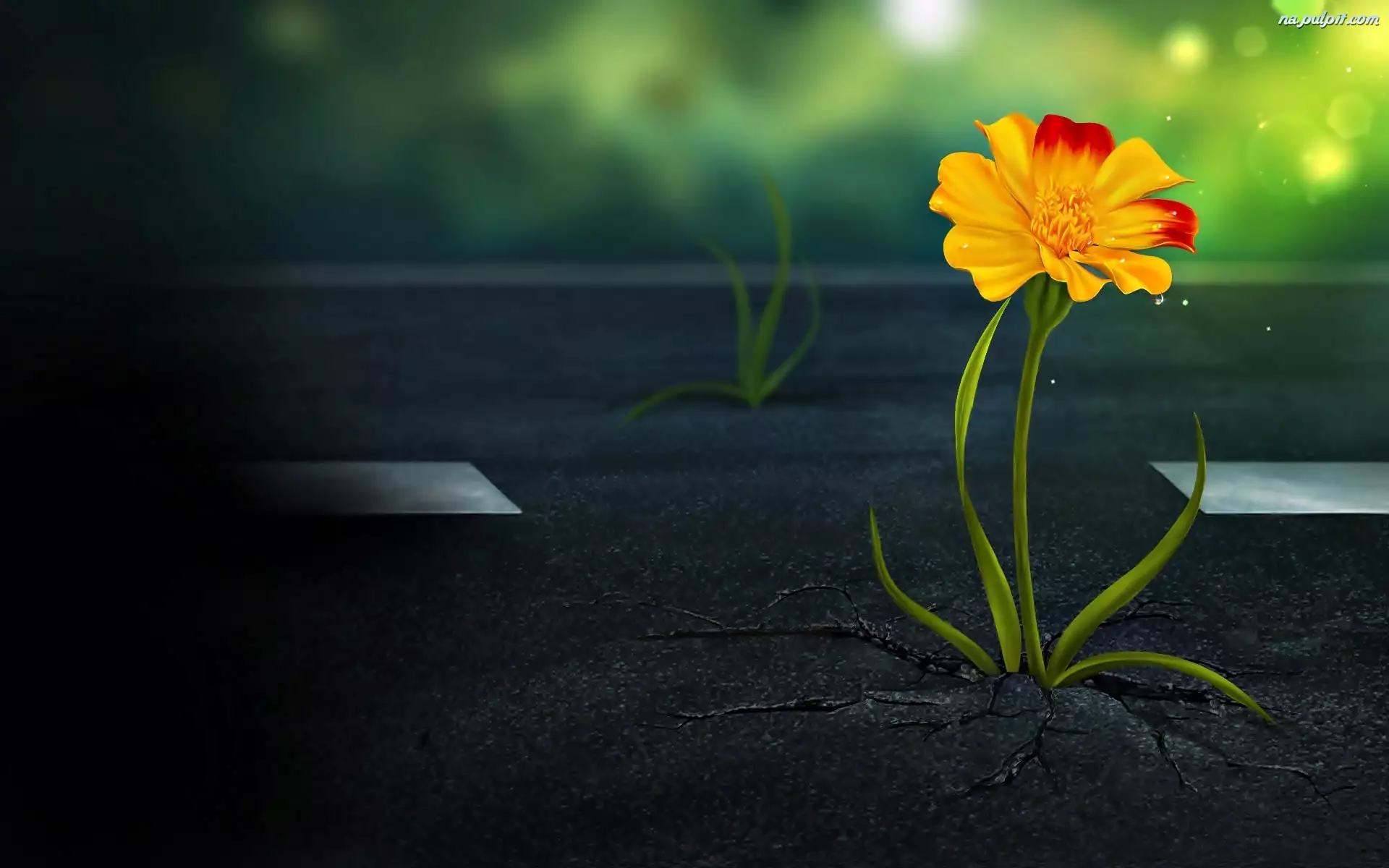 Żółty, Asfalt, Kwiatek, Listki