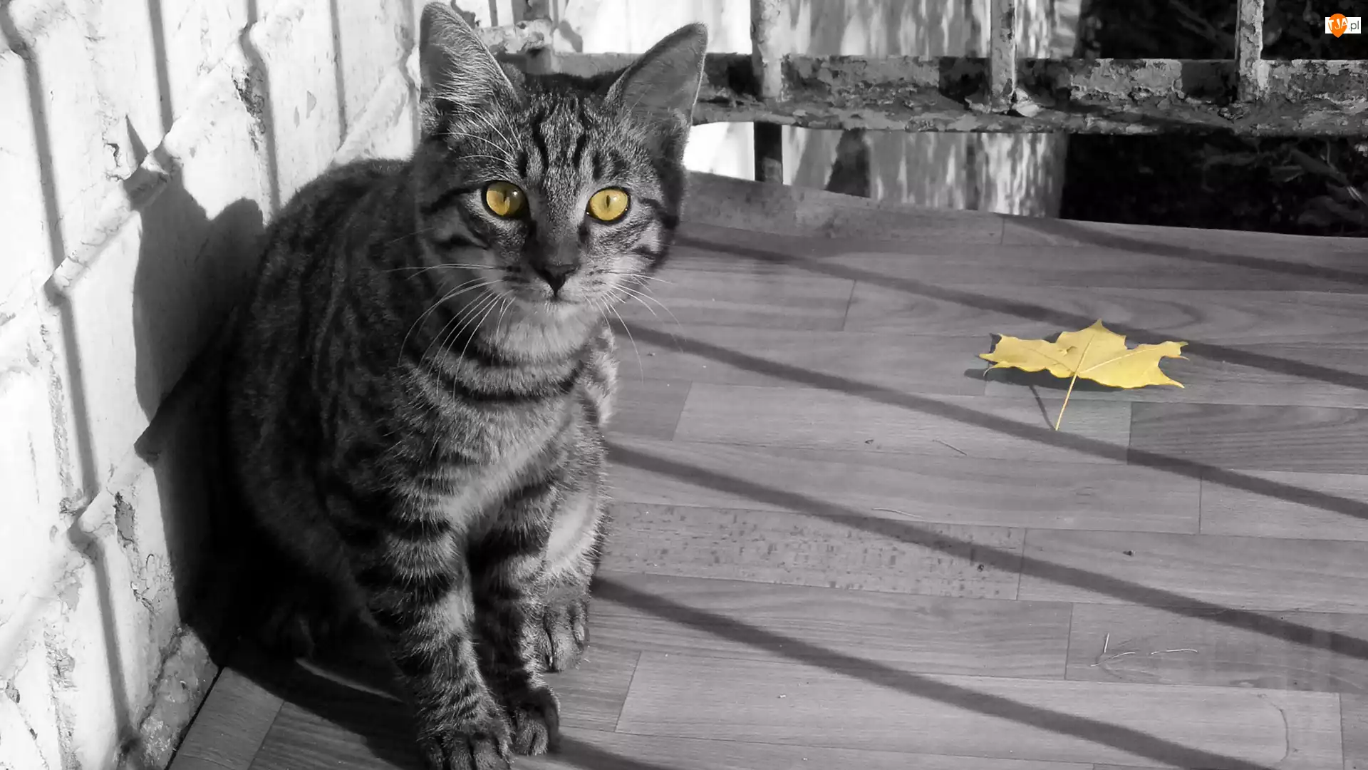 Żółty, Klonu, Dachowiec, Kot, Liść