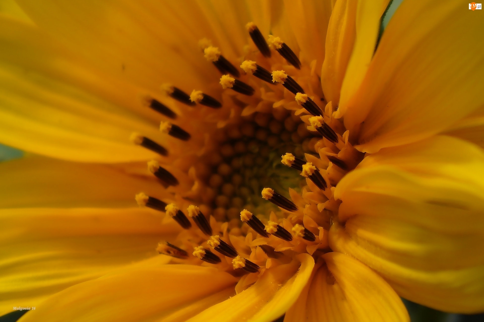 Żółty, Słonecznik ozdobny, Kwiat, Makro
