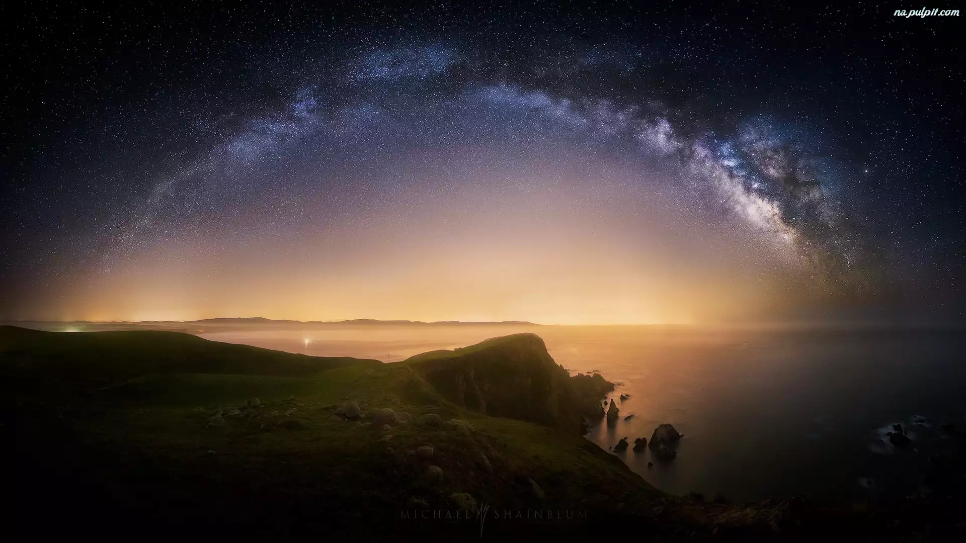 Stan Kalifornia, Półwysep Point Reyes, Morze, Droga mleczna, Stany Zjednoczone, Gwiazdy